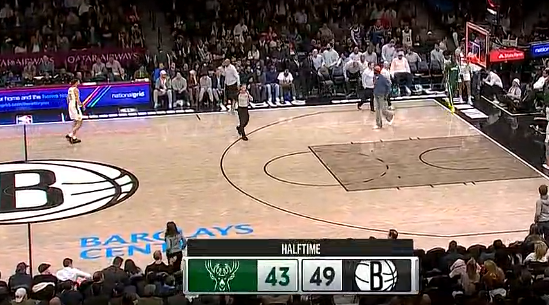 虎扑04月08日讯 NBA常规赛,篮网主场迎战雄鹿的比赛正在进行中,目前上半场比赛打完篮网以49-43领先雄鹿。